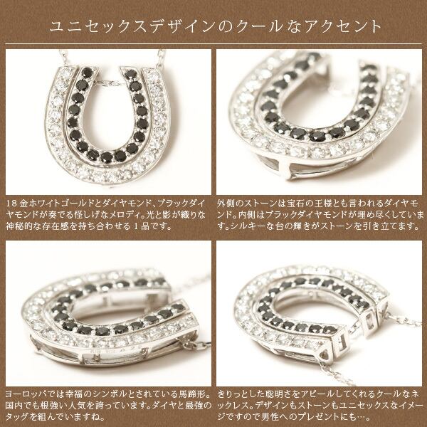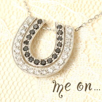 【me on...】K18ホワイトゴールドブラックダイヤモンド&ダイヤモンド・ホースシューネックレス